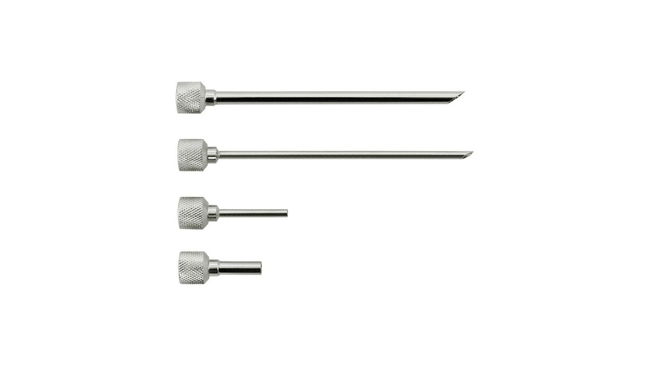 This set of 4 iSi injector needles is designed for use with iSi gourmet whippers and thermo whippers. Injector needles are ideal for decoration, stuffing food, liquid injections, marinating, injecting and basting, frying and cooking in fat, and spherification.