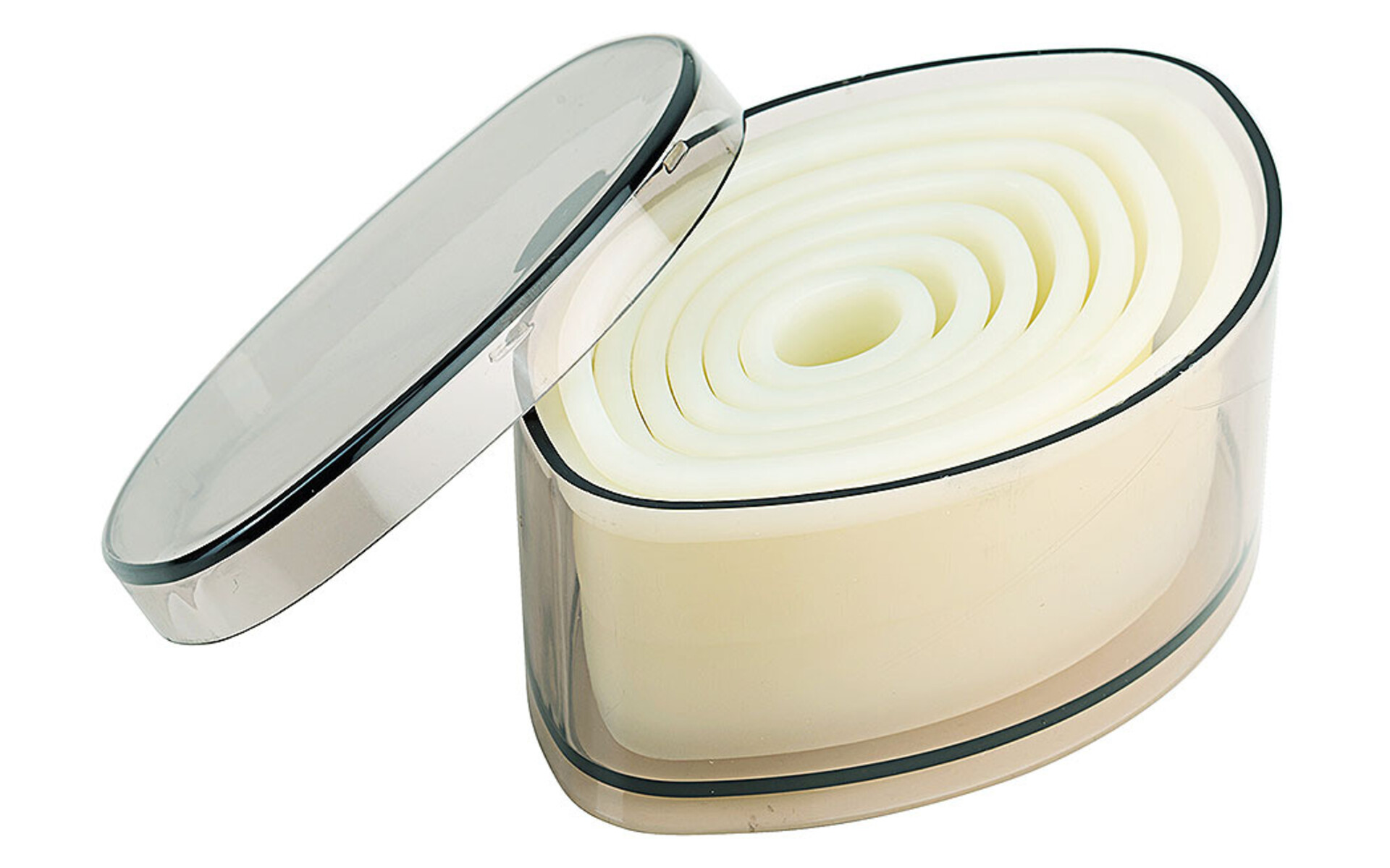 White Exoglass®, 5 pieces set from 20 mm x 10 mm - 110 mm x 65 mm. Hoogte 3,5 cm. Heat resistant up to +160°C, virtually unbreakable.