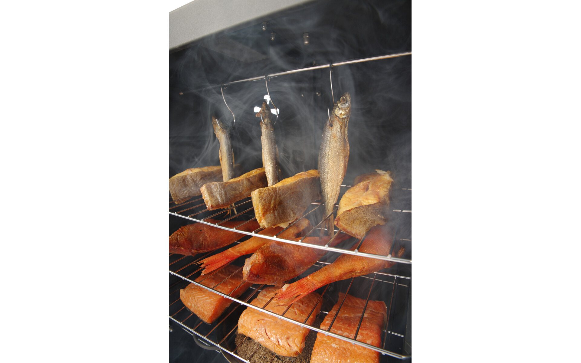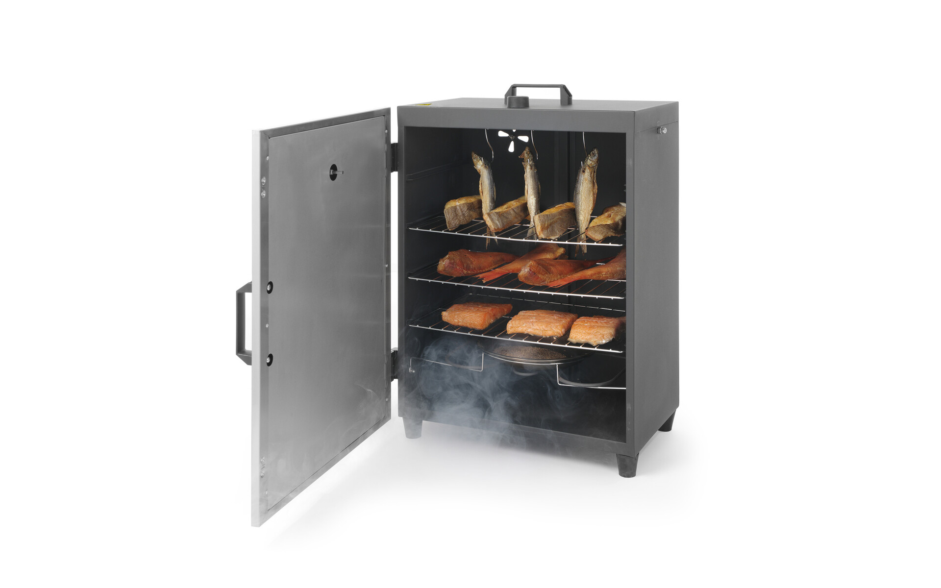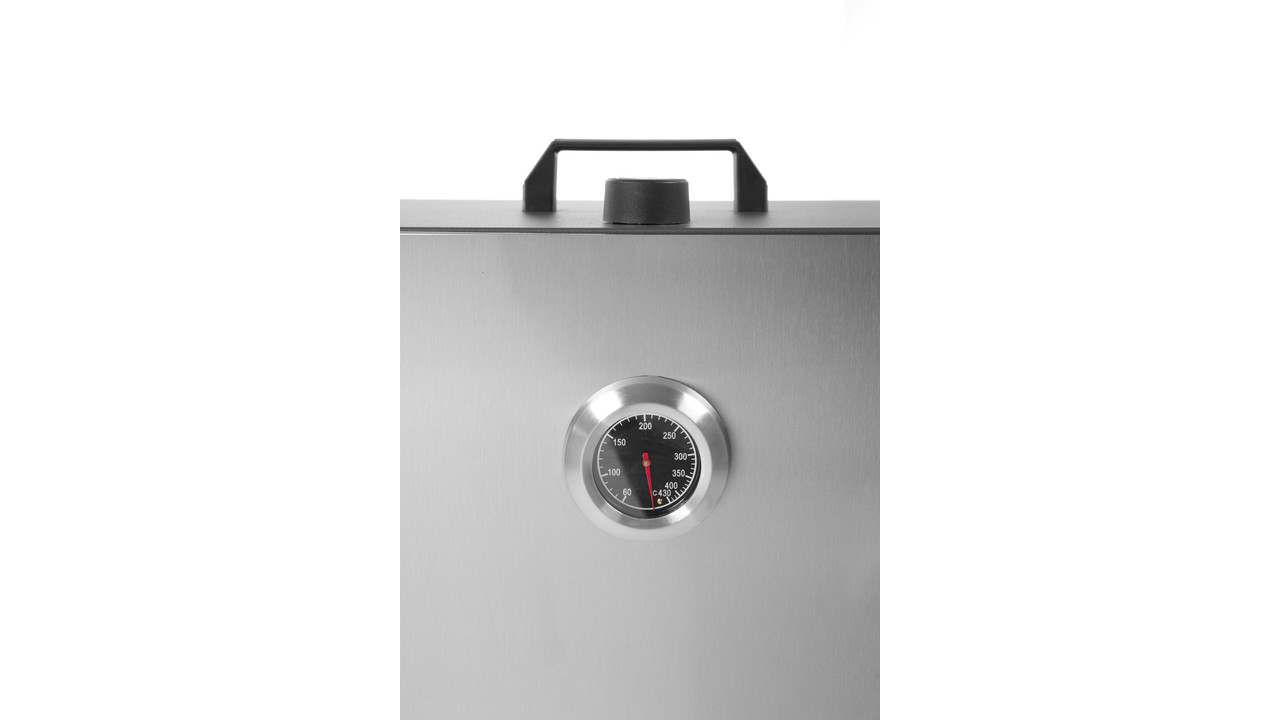 The smoke oven is ideal for smoking a variety of foods such as fish, beef, ham and vegetables. Made of stainless steel, with a magnetically closing double-insulated door. Temperature adjustable with a thermostat,