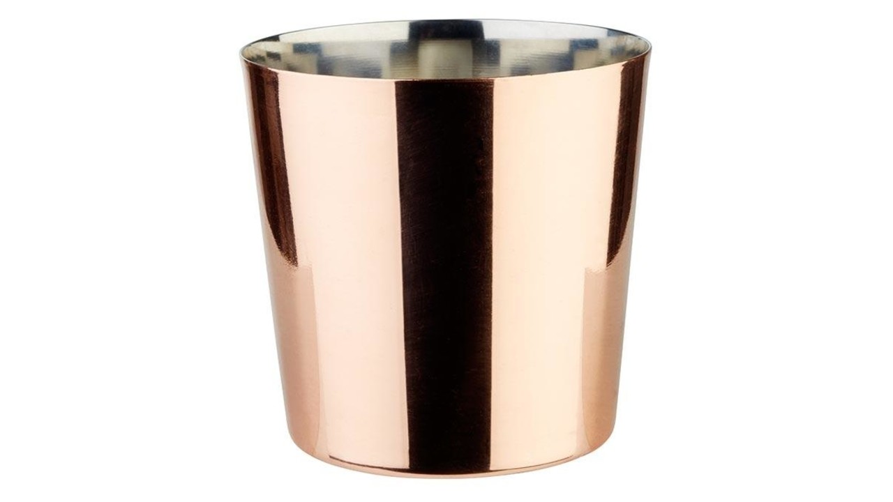 Outside copperplated inside stainless steel. Diameter 8,5 cm. Content 35 cl. Height 8,5 cm.
