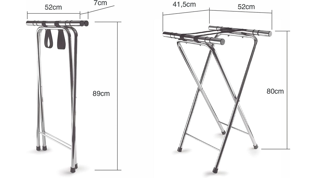 With black nylon straps. Foldable till 7 cm. Dimensions: 41.5 x 52 cm. Total height: 80 cm. Ideal for placing the tray art. Nr 19209590 and art. N° 162.
