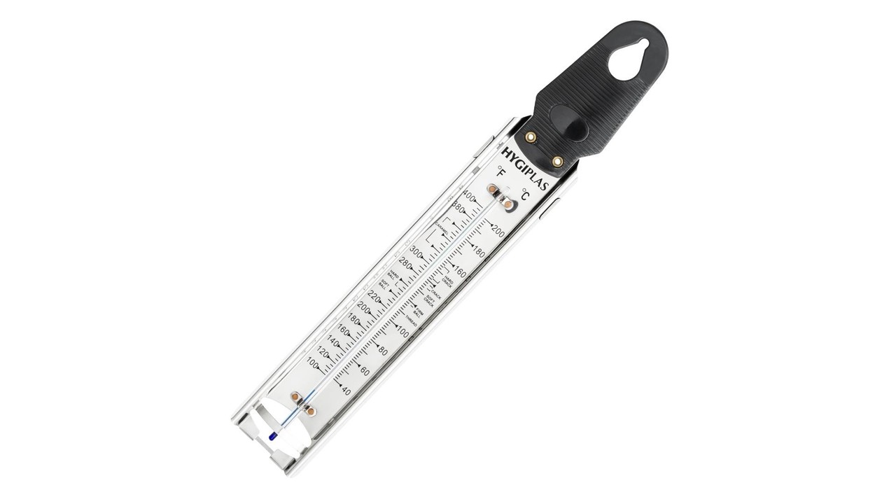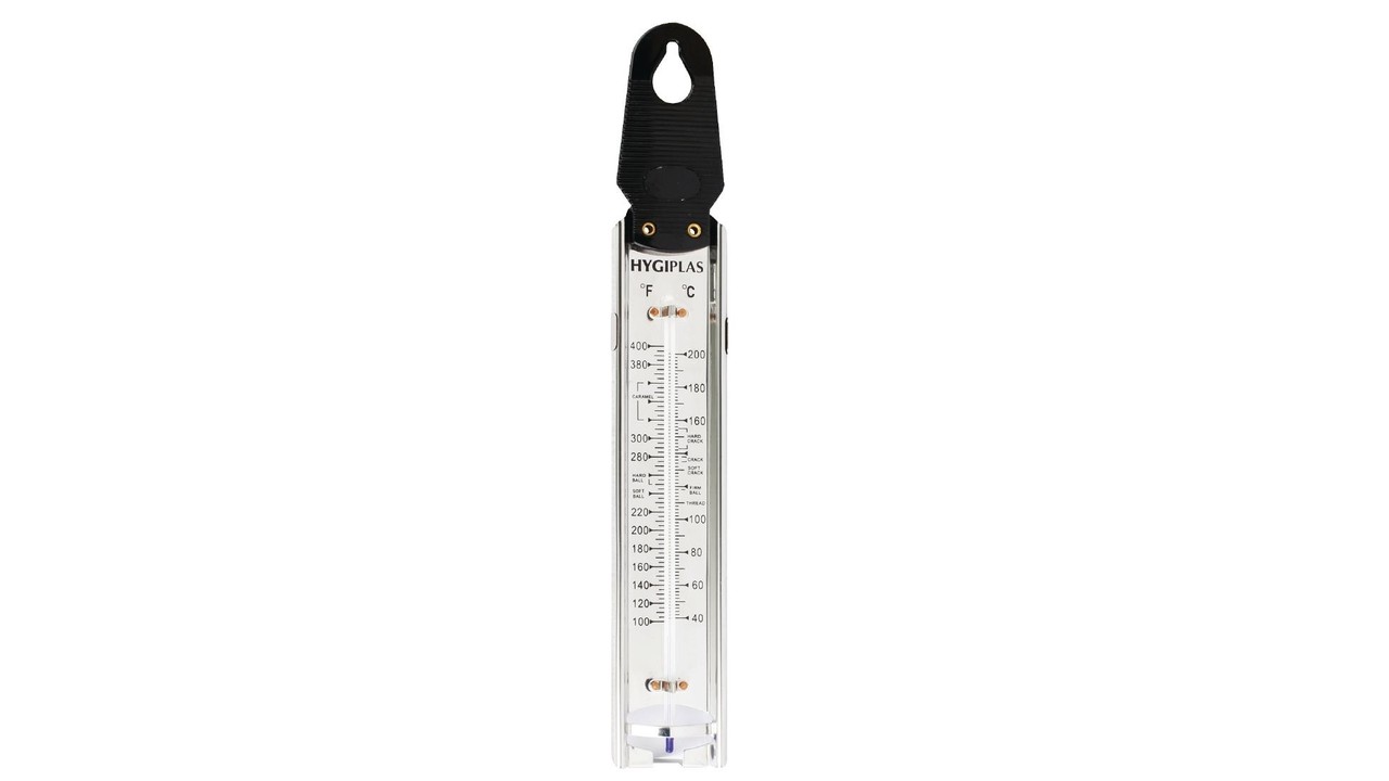 Ensure your jams, caramels and fudges are produced at the perfect temperature with this sugar thermometer from Hygiplas. Designed with clear markings, the thermometer is incredibly easy-to-read and simple to use, helping you obtain precise readings in seconds. For convenience, the thermometer also displays optimum temperatures for each stage of the sugar boiling process from thread to caramelisation, helping you achieve the desired result with ease. The design also allows you to hang the thermometer onto the edge of any pan for added convenience. This thermometer features a temperature range of +40 to +200°C (104 to 392°F).