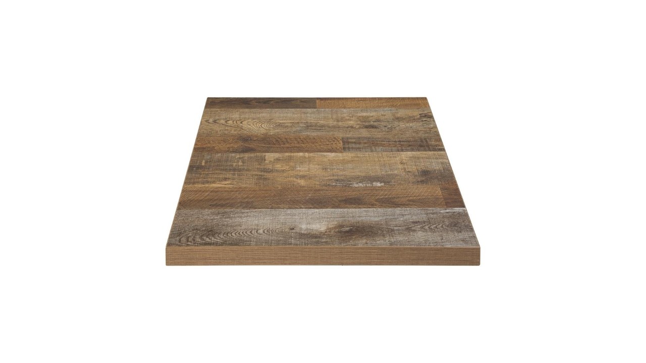 Rustic/industrial top - perfect combination with this black cast iron table leg. For indoor use only. Pre-drilled for easy self-assembly. 4.8cm thick wood effect top. Easy to clean. PVC edge.