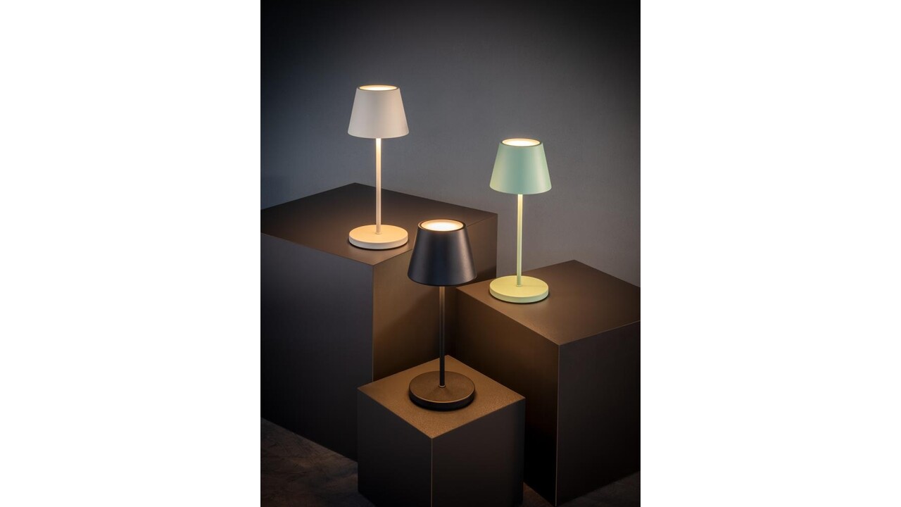 Colour: whisper white, 1x LED 2,0 W / 180 lm, dimmable in 3 levels, CCT: 2.200 / 2.700 / 3.500 K, 5.000 mAh Li-ion battery, splash water protection IP54, charging time: 8h, lighting duration: 10h (100% brightness), max. lighting duration: 54h (lowest brightness), charging cable USB A to USB C.