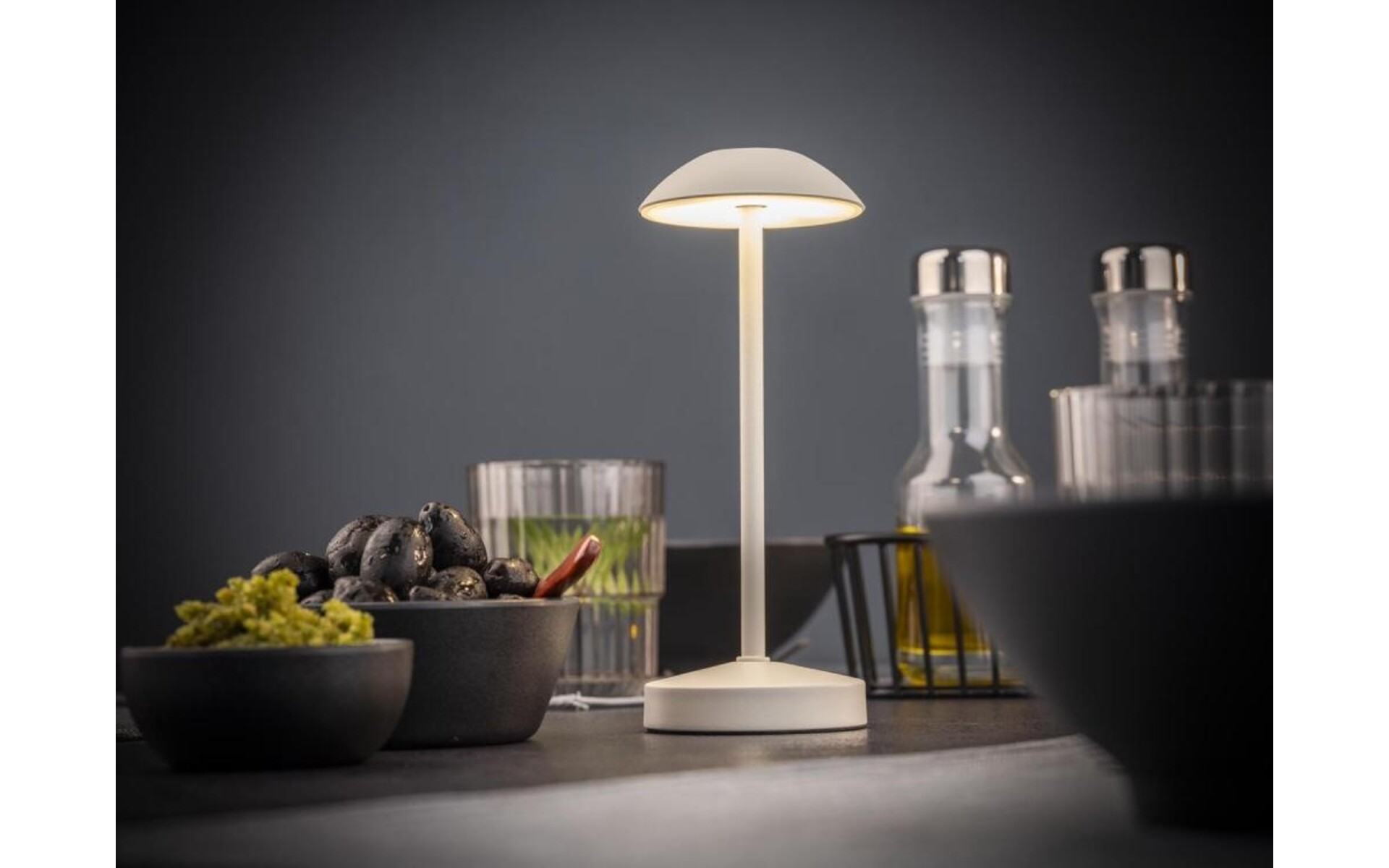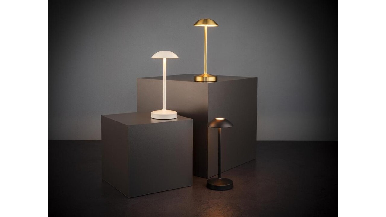 Colour: whisper white, 1x LED 2,0 W / 180 lm, dimmable in 3 levels, CCT: 2.200 / 2.700 / 3.500 K, 5.000 mAh Li-ion battery, splash water protection IP54, charging time: 8h, lighting duration: 10h (100% brightness), max. lighting duration: 54h (lowest brightness), charging cable USB A to USB C.