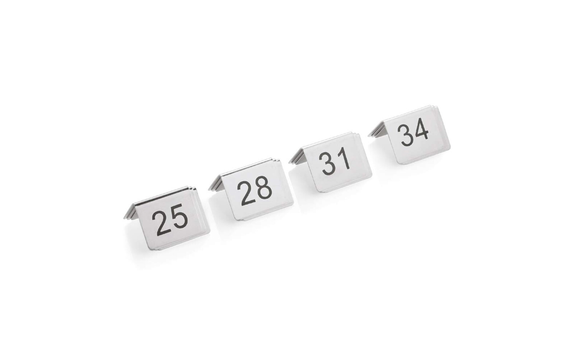 Price per set of 12 pieces. Stainless steel with table number on both sides. Dim. 5 x 5 x h 4,5 cm.