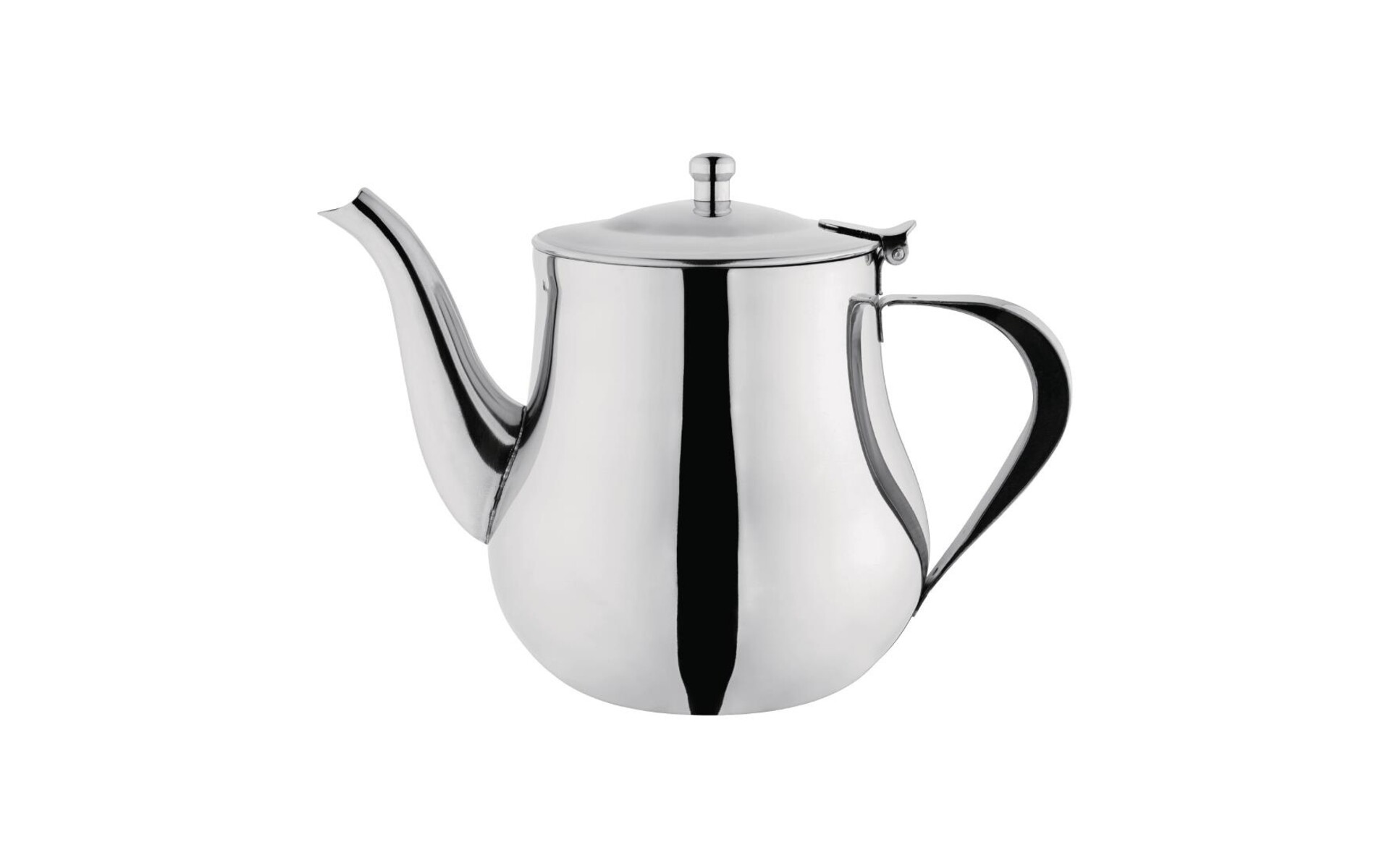 Combining a curved Arabian shape with a convenient hinged lid and lightweight, stainless steel construction, this teapot is great for a range of businesses. Available in a variety of sizes, this teapot has a double line handle to limit heat exchange and suits coffee bars, barista's, restaurants and hotels which want the practicality of stainless steel in a visually appealing teapot.