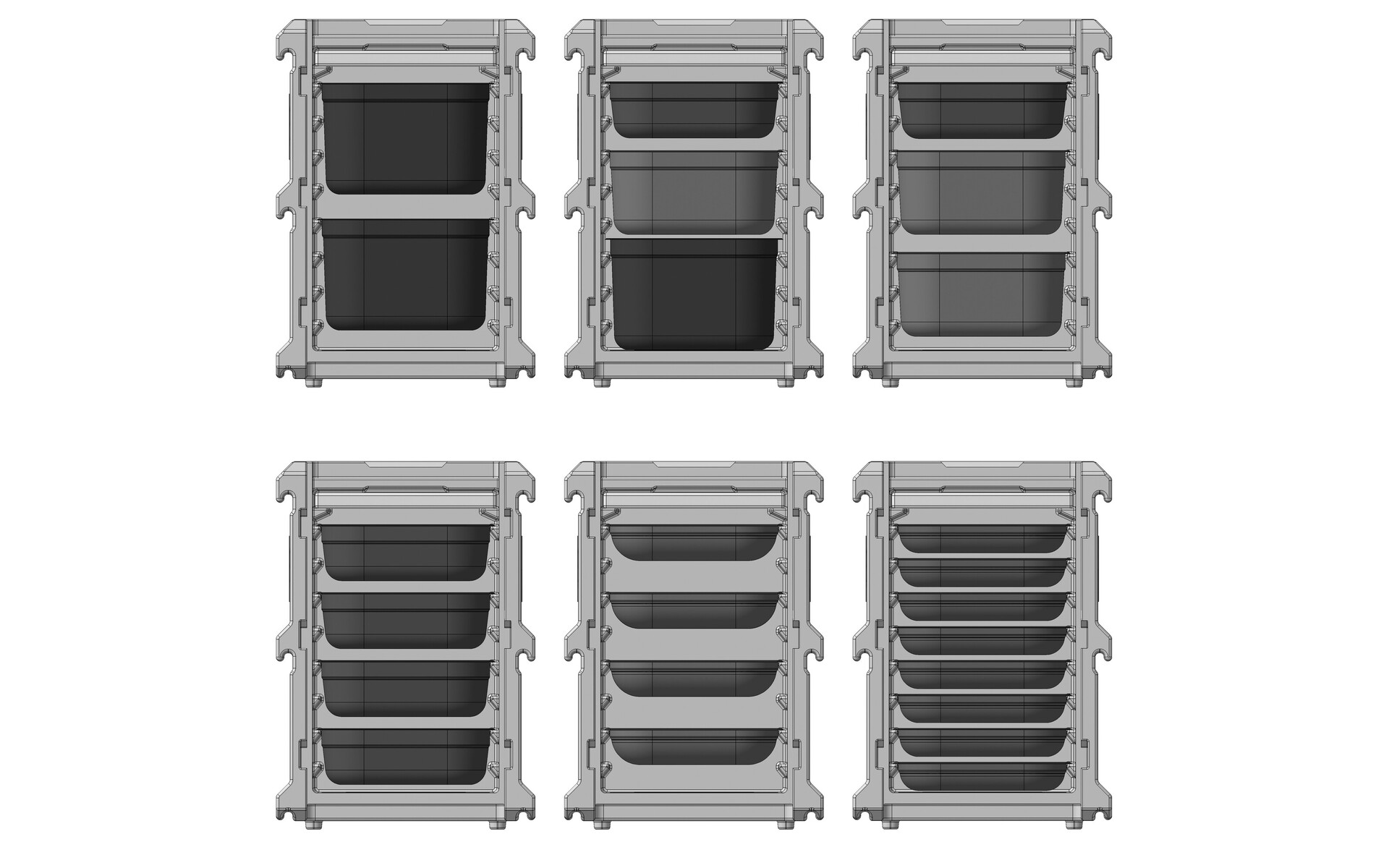 1 x GN 1/1 depth 100 mm + 2 x GN 1/1 depth 150 mm