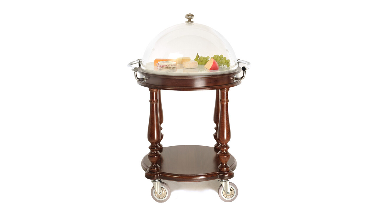 Beautiful cheese trolley with relief marble. Complete with perspex dome and chilled - what a perfect way to present your cheese! Available in any colour.