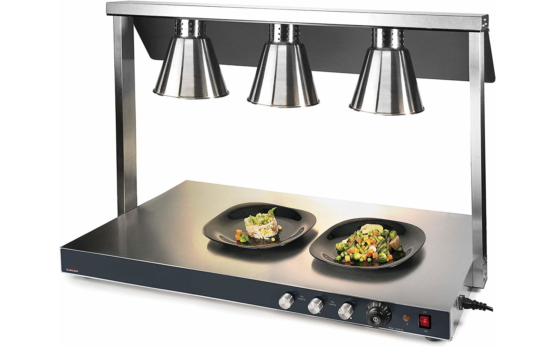 Dim. 107 x 53 x h 70 cm The temperature of each infra-red lamp is adjustable from 40° C till 90 ° C High impact perspex safety screen