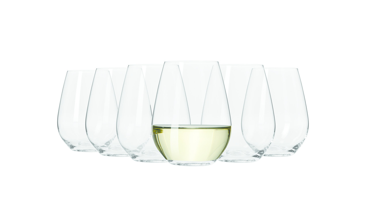 These stemless glasses are available in 58 cl and 50 cl together with champagne flutes.
