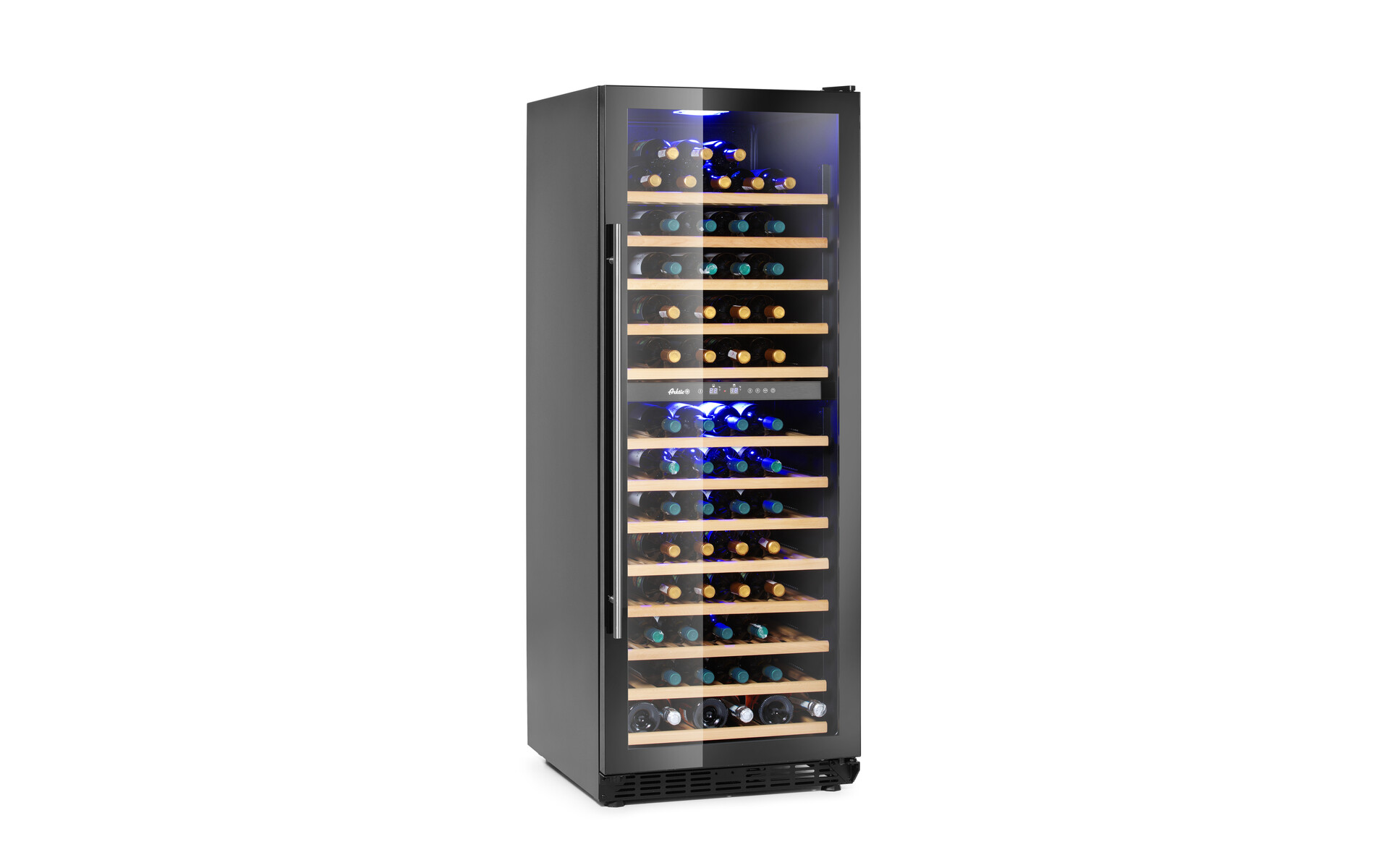 Arktic dual zone wine coolers for 135 bottles is a unique high capacity refrigeration unit featuring an elegant, modern design. A wide range of temperatures makes it perfect for storing wine such as: Bordeaux, Rioja, Sauvignon or Prosecco.