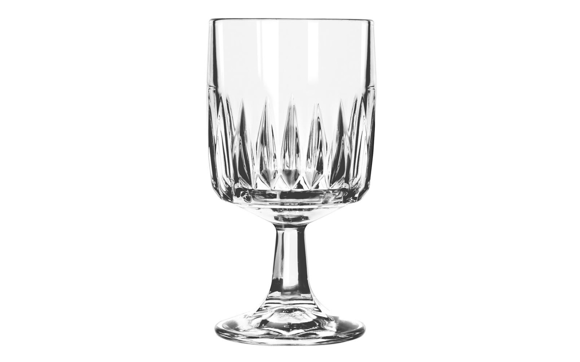 This pressed stemware has a thick stem, providing stability to the glass and a secure grip to customers and servers