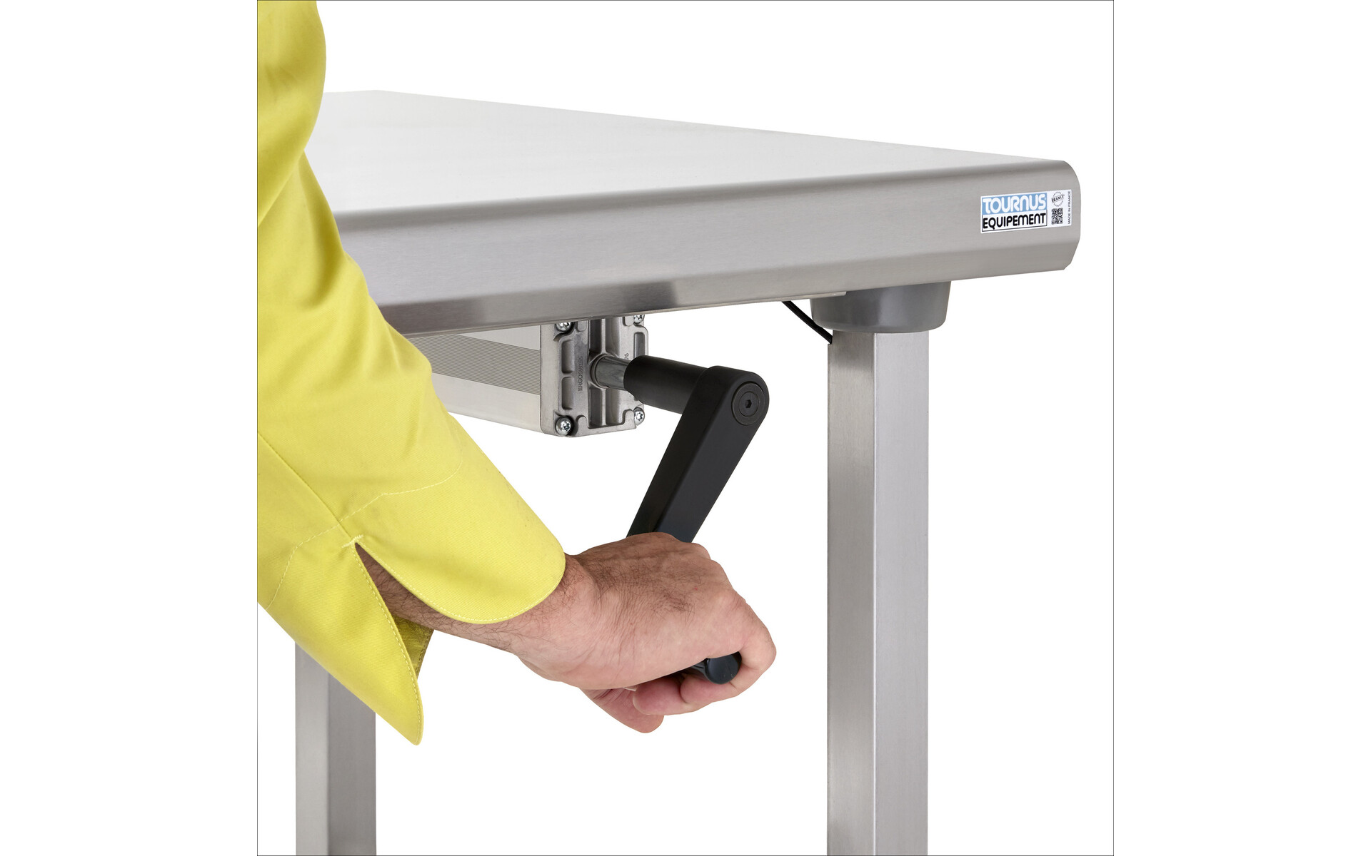 After adjusting the height, the crank can be folded under the worktop, thus avoiding the risk of snagging or shocks.
