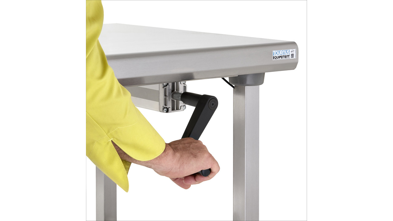 After adjusting the height, the crank can be folded under the worktop, thus avoiding the risk of snagging or shocks.