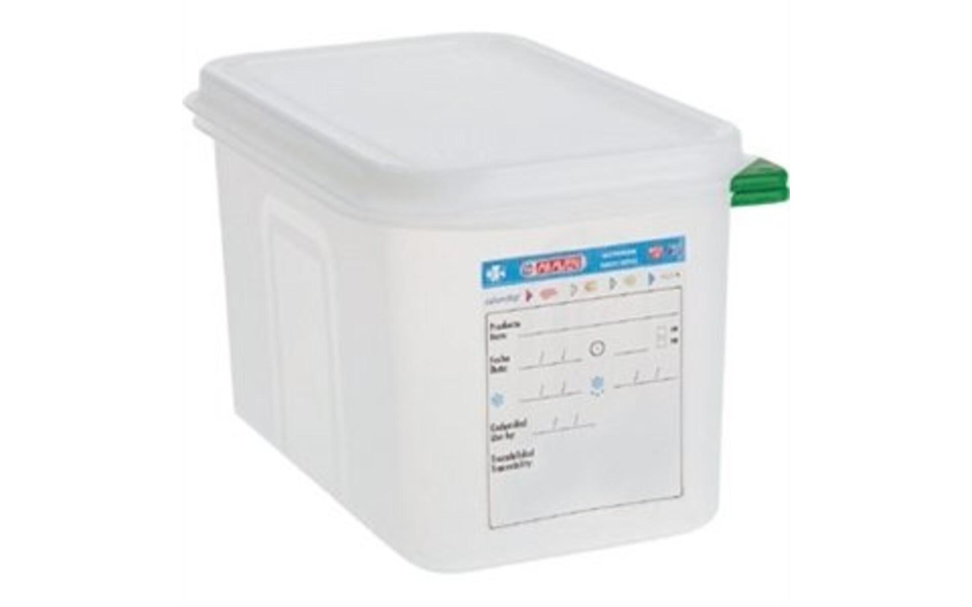 Ces conteneurs hermétiques sont disponibles en plusieurs dimensions Gastro. Chaque boîte est fournie avec un jeu d'étiquettes couleur (rouge, jaune, vert et bleu) ainsi qu'une étiquette d'identification permanente et effaçable. Tous les aliments s...