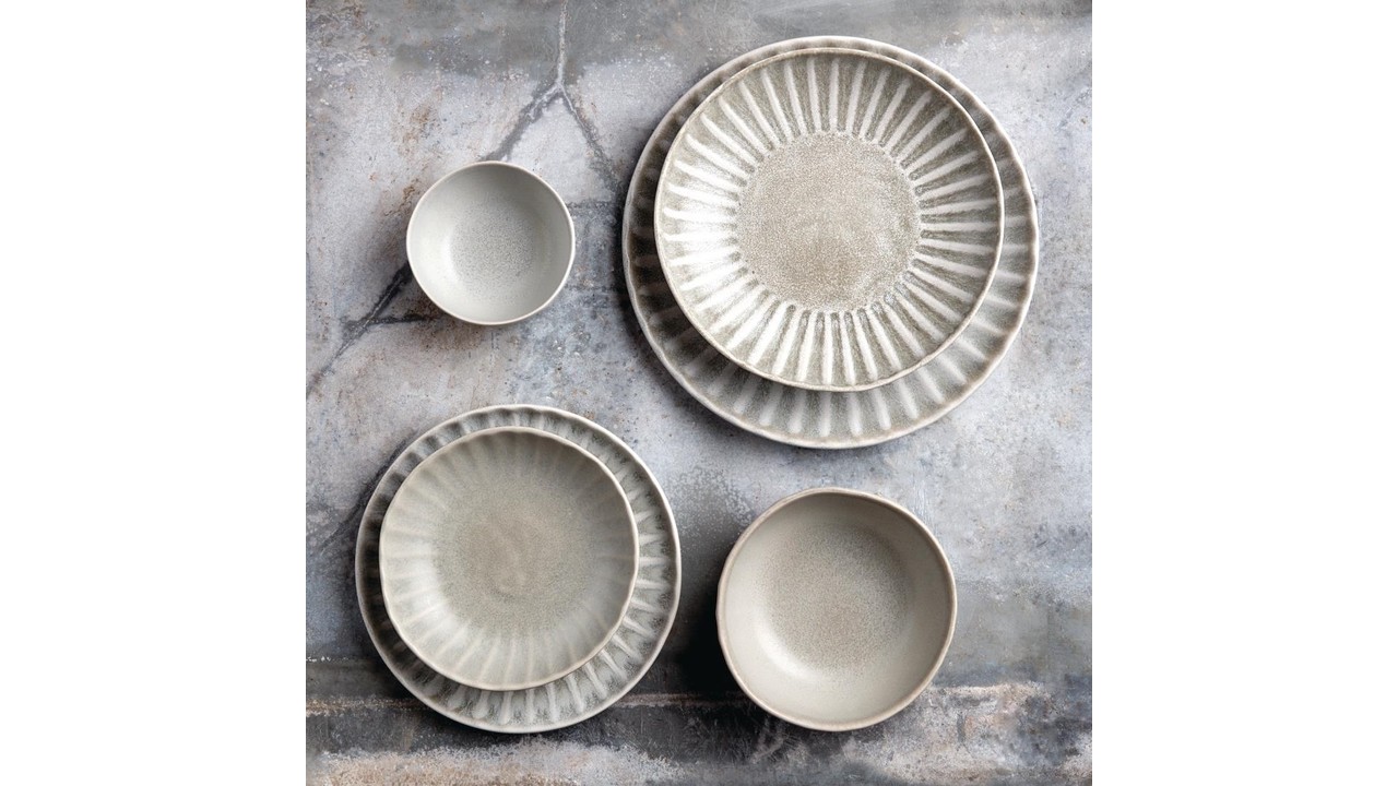Nouvelle gamme de vaisselle Olympia Corallite. Inspirée de matières brutes et naturelles. Le bord en relief de l'aile des assiettes et des bols ajoutent de la texture. L'émail gris uniforme est conçu pour donner un aspect béton brut. Chaque pièce est unique. Idéale pour mettre en valeur les plats signature des restaurants.