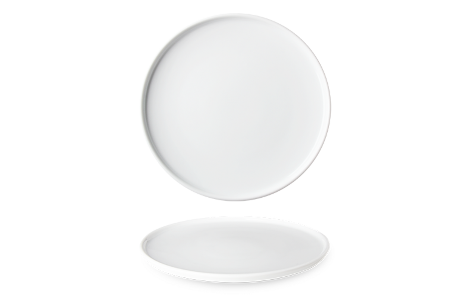 Assiette empilable à bord droit. Hauteur 2,8 cm. Porcelaine renforcée.