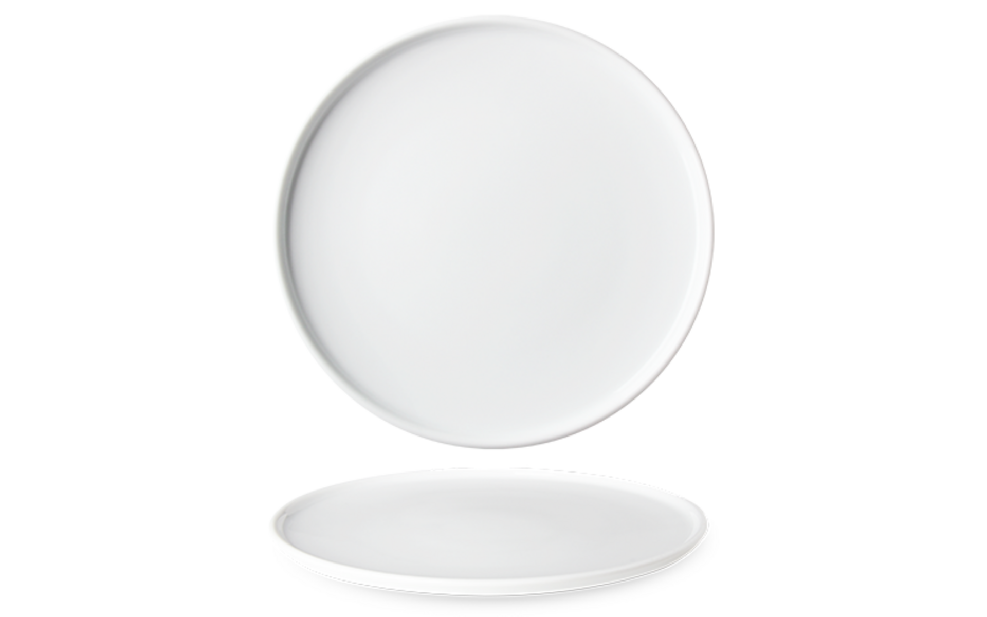 Assiette empilable à bord droit. Hauteur 2,7 cm. Porcelaine renforcée.
