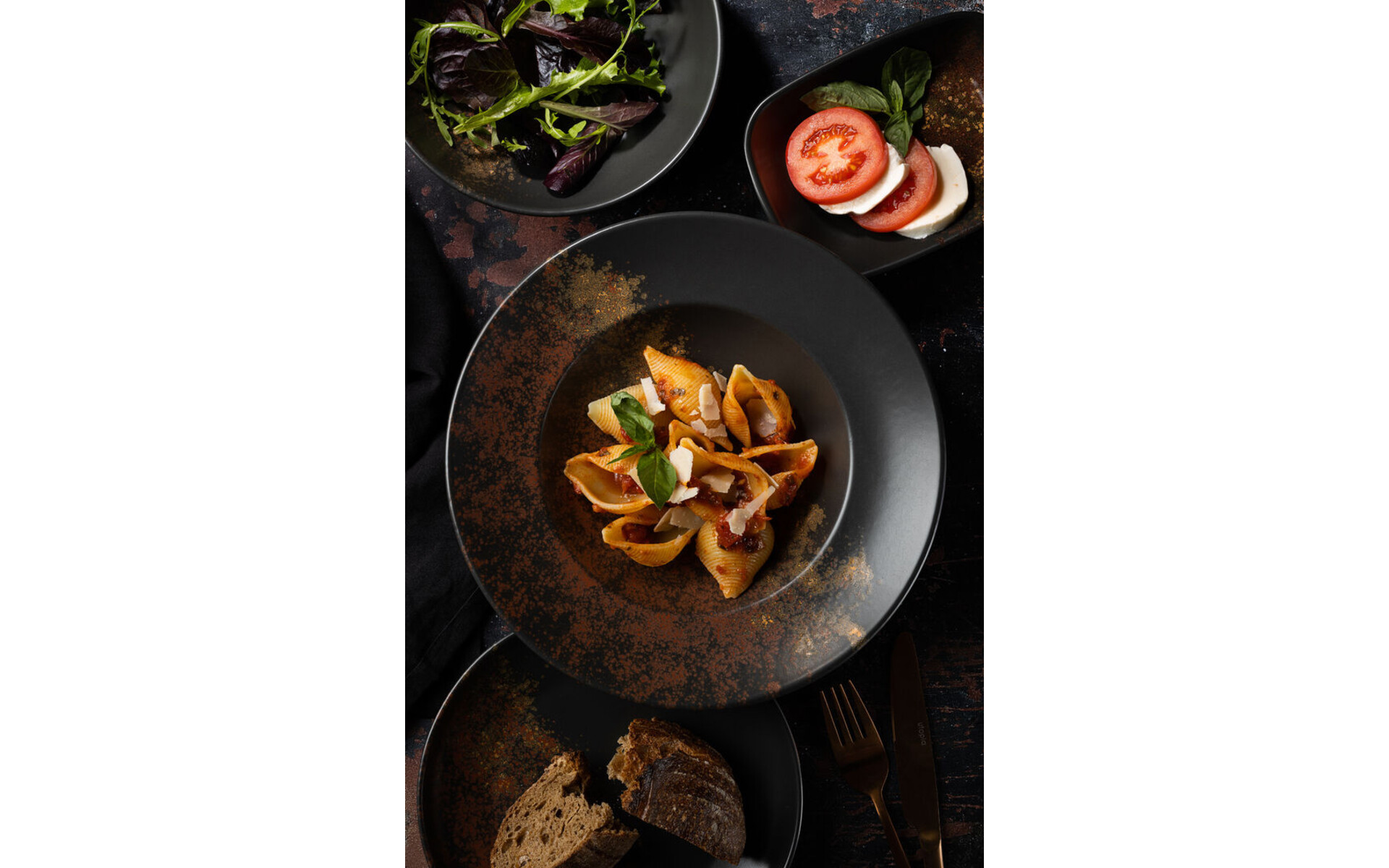 Une collection polyvalente comprenant des plats et des accessoires.