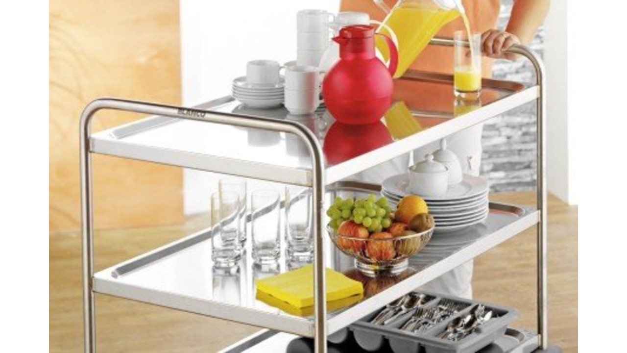 Chariot de service 3 plateaux (1000 x 600 mm). La charge maximale par plate-forme est de 80 kg. 2 roulettes fixes, 2 roulettes pivotantes avec freins. Roues diamètre 125 mm en acier galvanisé