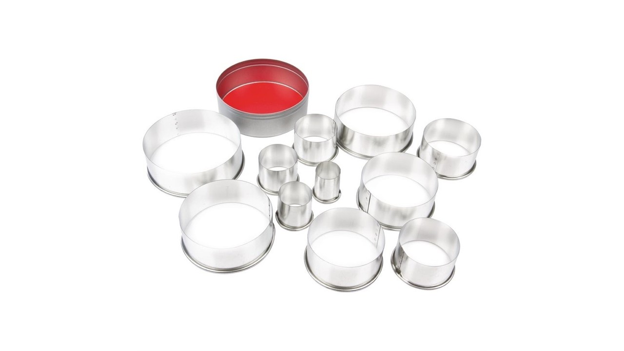 Faites des cercles parfaits avec cet ensemble d'emporte-pièces. L'ensemble contient 11 pièces de différentes tailles pour différentes applications, par exemple pour la fabrication de biscuits et autres produits de boulangerie. Ils sont en acier étamé et donc très robustes et durables. Ils peuvent prendre une raclée et conviennent à une utilisation dans n'importe quelle cuisine animée sans se casser ou se déformer.