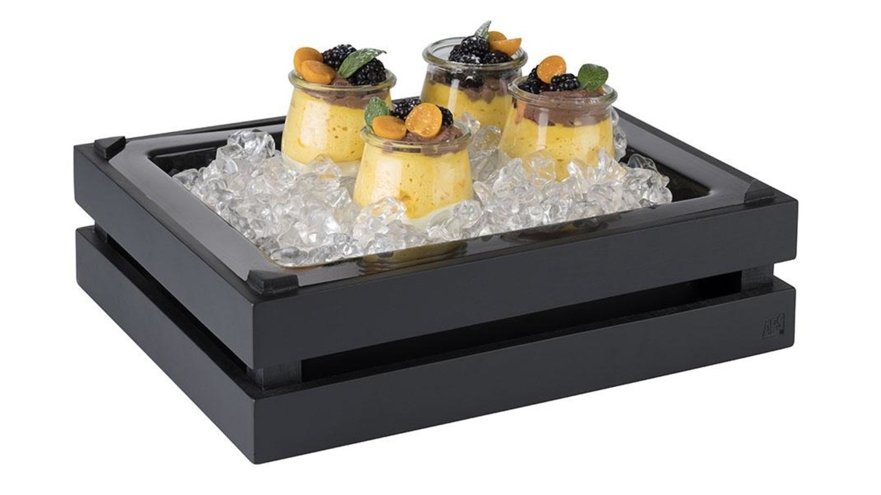 Cet ensemble se compose d'un bac GN 1/2 en bois noir et un bac GN 1/2 en polystyrol