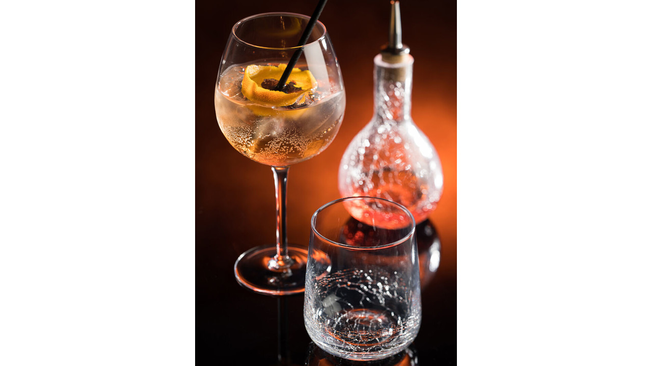 Un ajout élégant à n'importe quel bar, cette généreuse bouteille est faite à la main et présente un effet craquelé individuel. Verre fait main. Verseur en acier inoxydable avec bouchon en liège naturel pour un ajustement parfait.