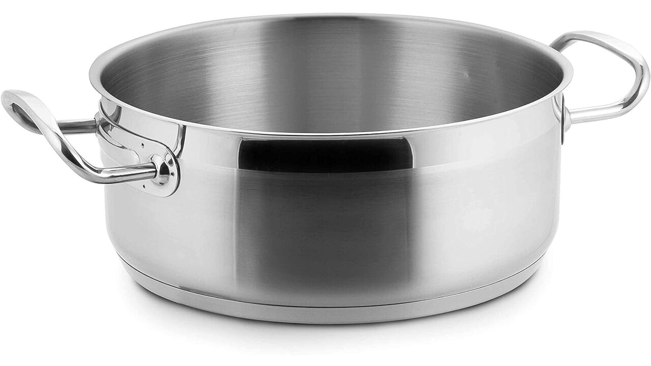 Rondeau lourde de Lacor "Eco-Chef" en acier inoxydable 18/10 sans couvercle, de qualité supérieure. Le fond thermo-diffuseur est un excellent conducteur de chaleur et convient à toutes les plaques de cuisson et cuisinières, y compris l'induction. Lacor est utilisé dans les meilleurs restaurants et hôtels du monde entier. Couvercle vendu séparément si nécessaire.