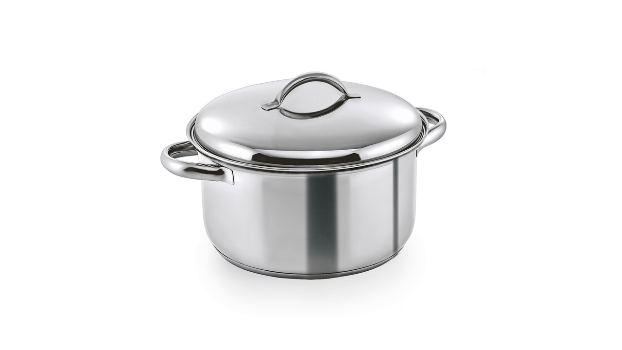 Fabriqué en acier au chrome-nickel. Avec fond sandwich. Poignées froides en acier inoxydable des deux côtés. Convient pour l'induction. Hauteur du pot: 9,5 cm. Contenance 1,8 litres.