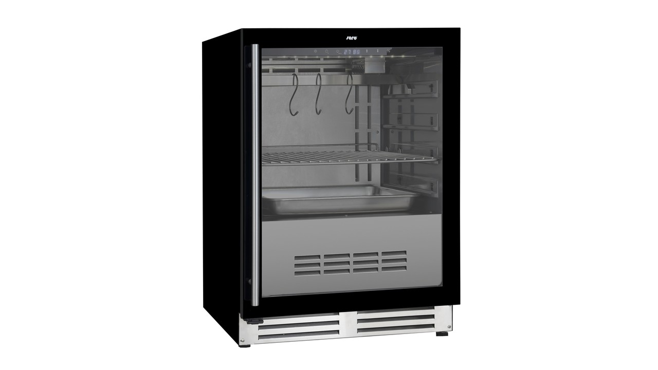 Cave de maturation de viande - Dry aging cabinet Matière: (boîtier) acier, noir mat, couvert de poudre - Contrôle numérique de la température - Humidité (60% - 85%) - Éclairage LED - Système ultraviolet