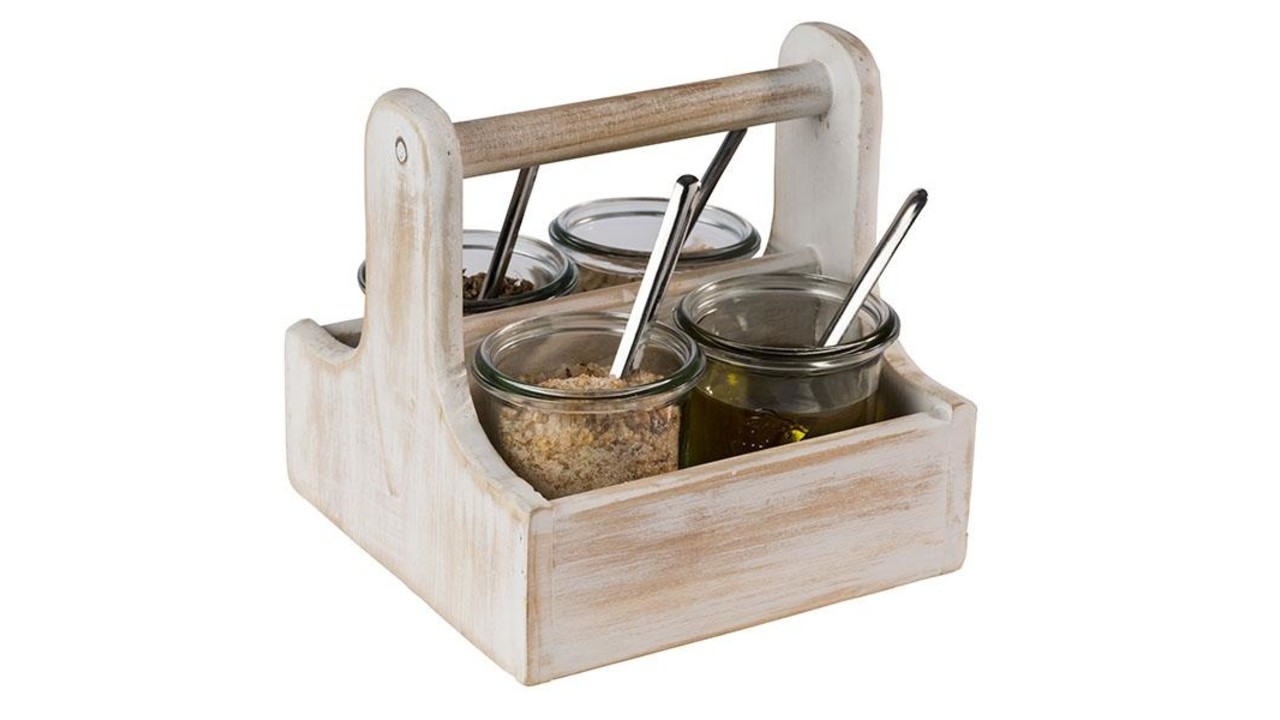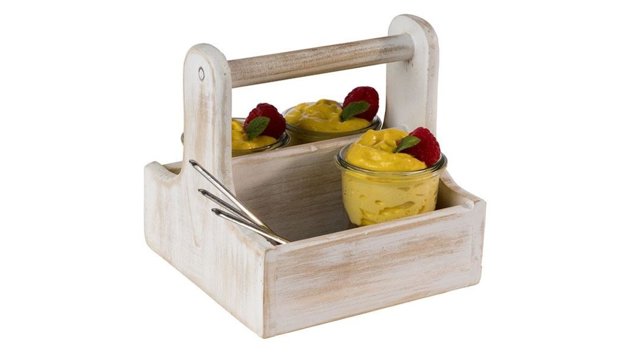Support trendy en bois pour servir les condiments ou une entrée ou un dessert