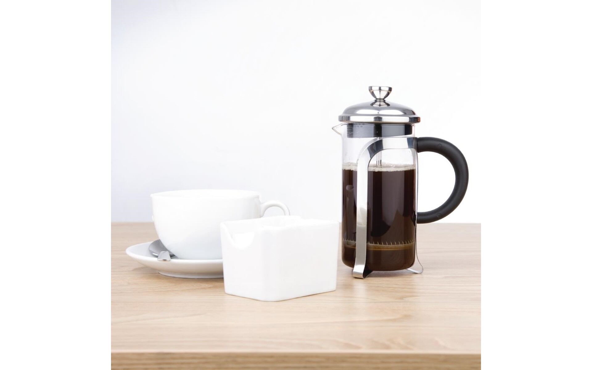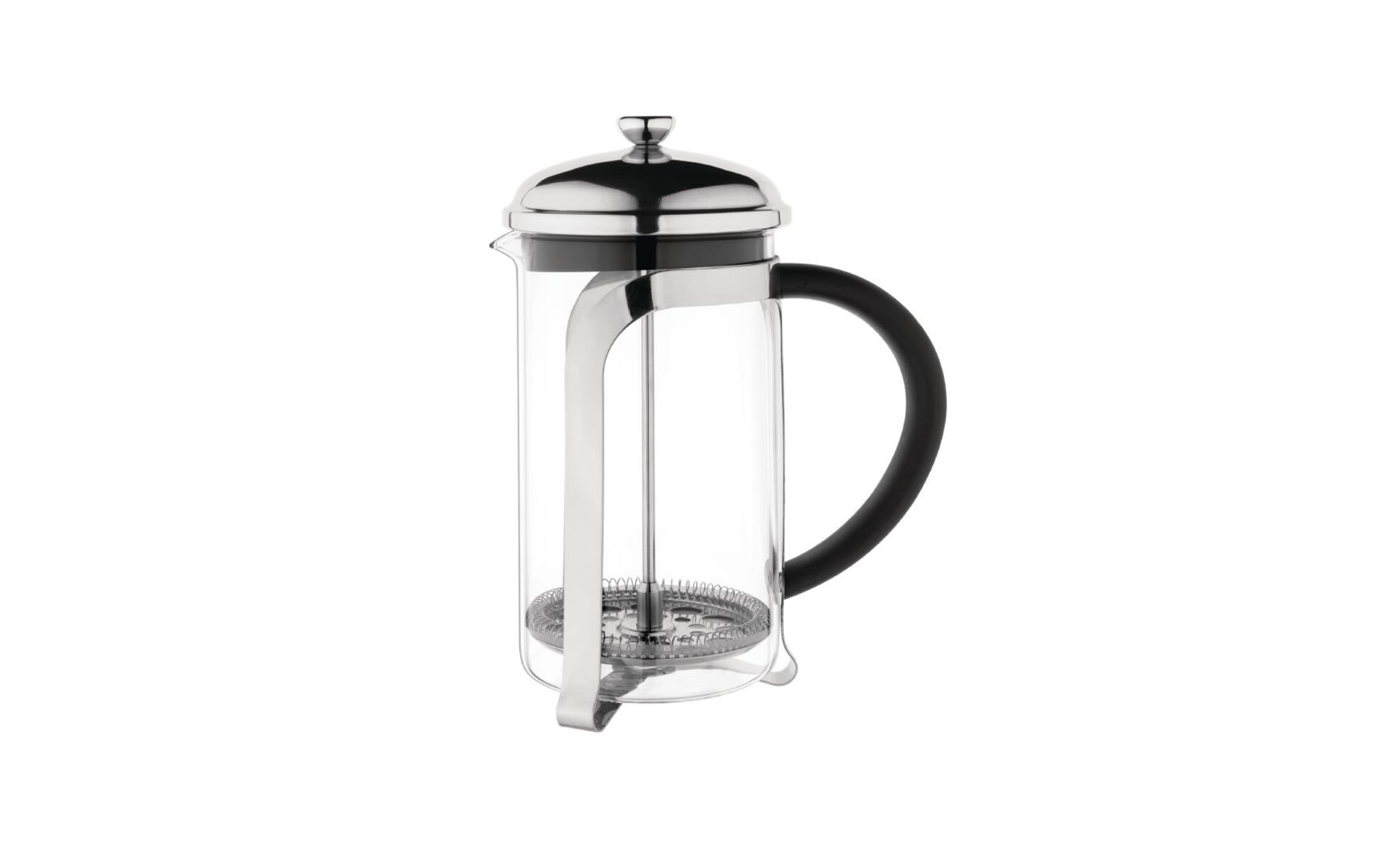 Cafetière à piston avec filtre en acier inoxydable de forme améliorée pour une meilleure circulation de l'eau. Le filtre et le récipient en pyrex résistant aux chocs thermiques sont amovibles pour un nettoyage facile. Couvercle en acier inoxydable.