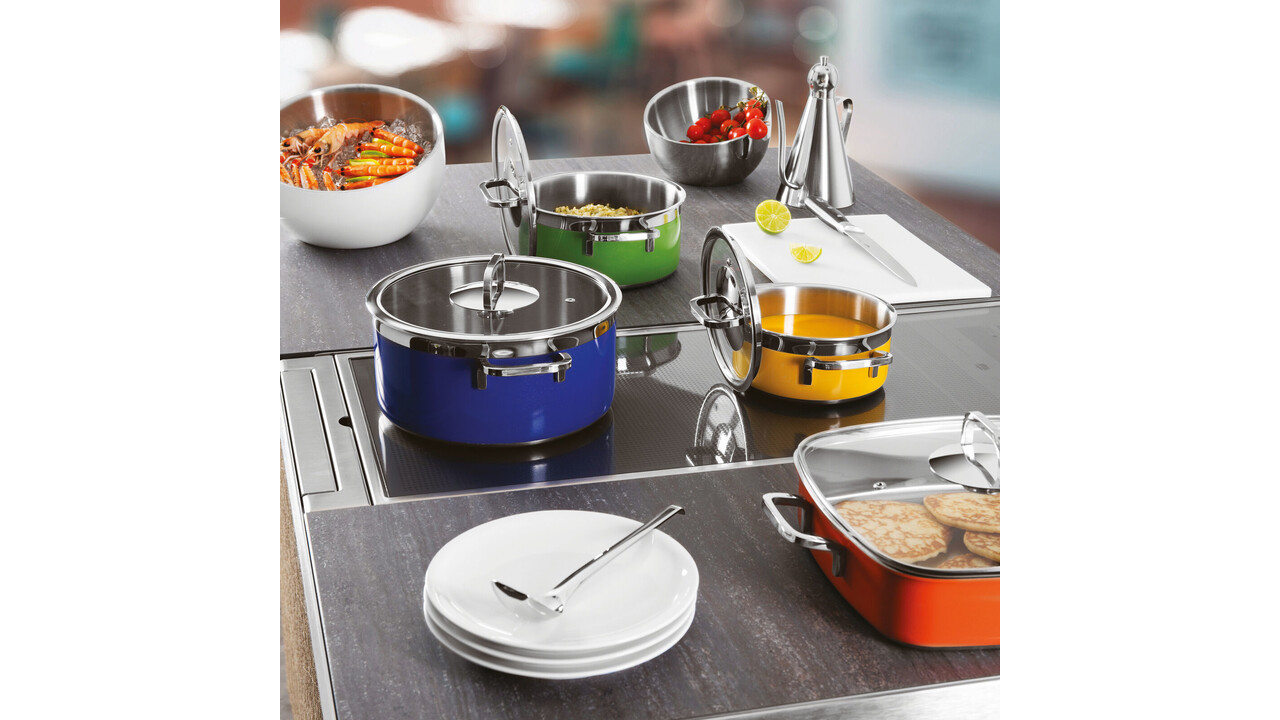 Une belle ligne multifonctionnelle et colorée disponible en jaune, vert, bleu et orange. Finition extérieure avec peinture spéciale résistante à la chaleur. Idéal pour tous types de buffets.