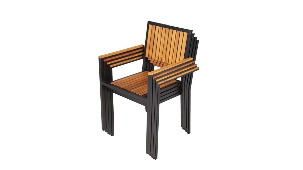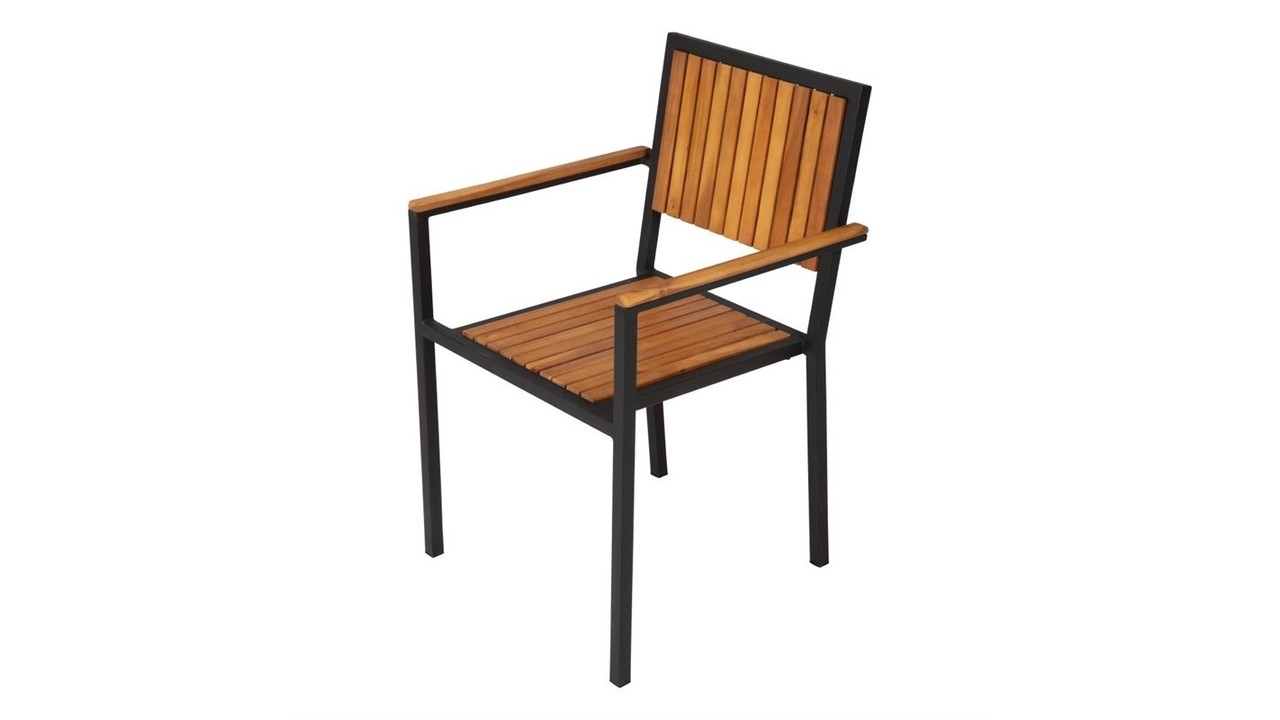 Matériel: Bois d'acacia et acier poudré . Pré-huilé pour une durée d'utilisation plus longue. Construction robuste en bois et acier. Un entretien régulier du bois est préconisé . Modèle empilable.