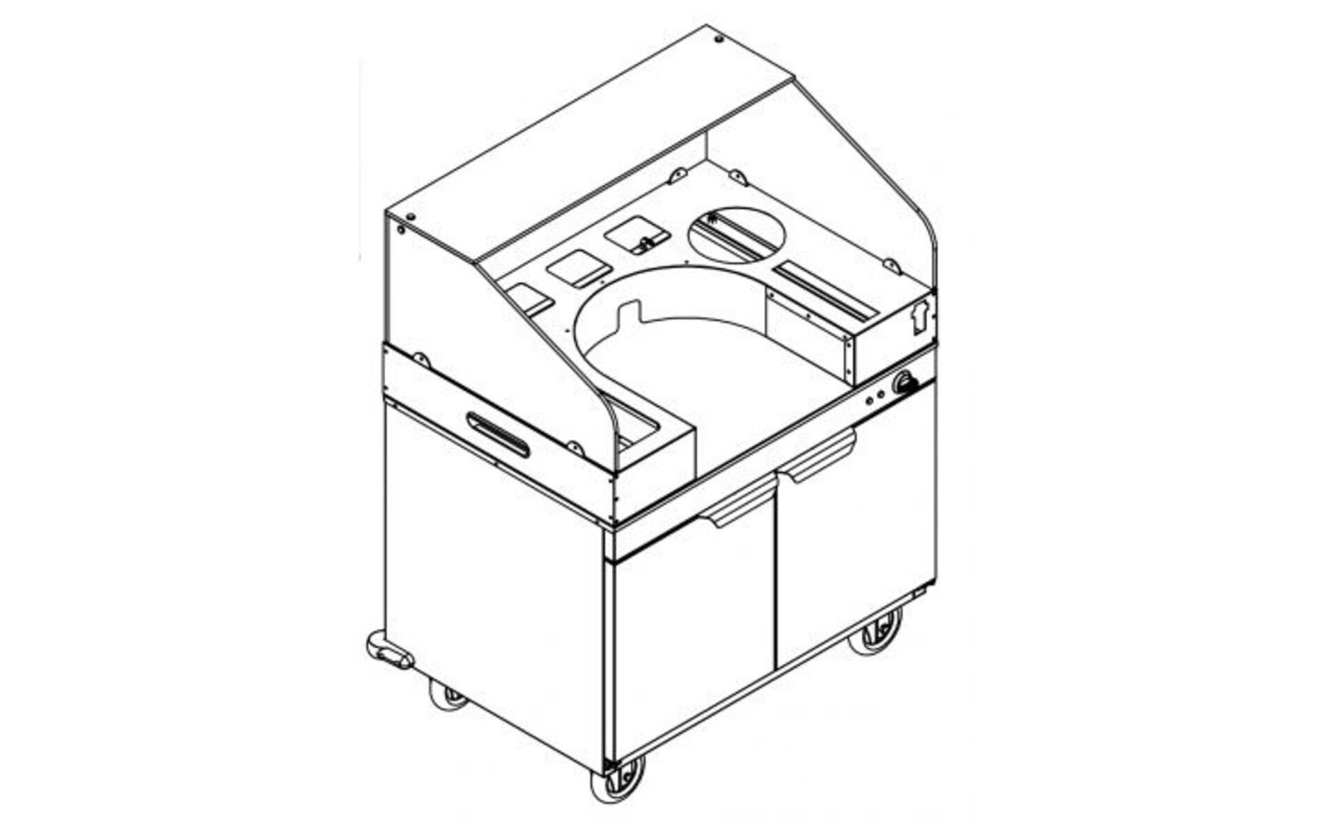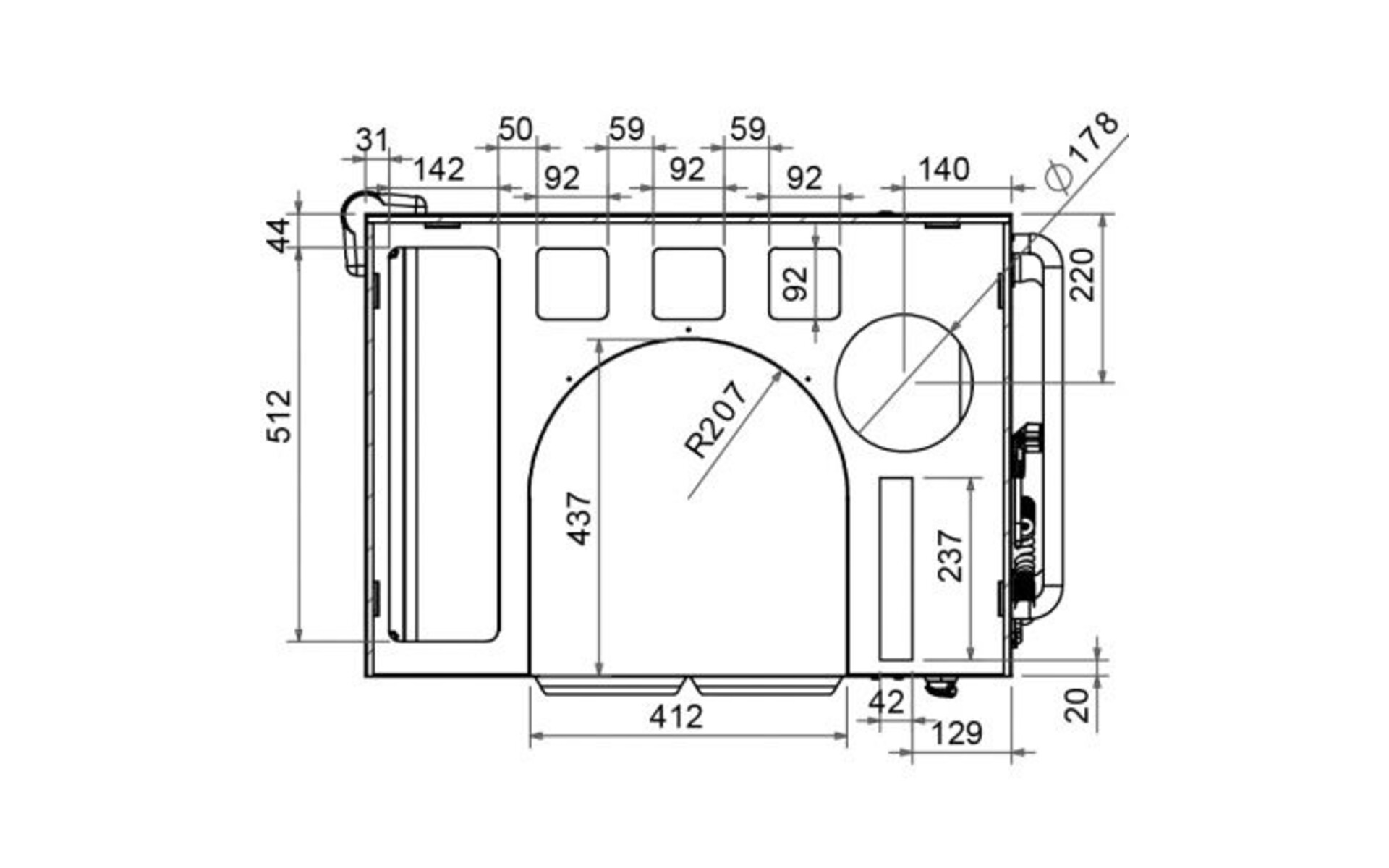 - Espace disponible : L 412 x P 437 x rayon 207 mm
