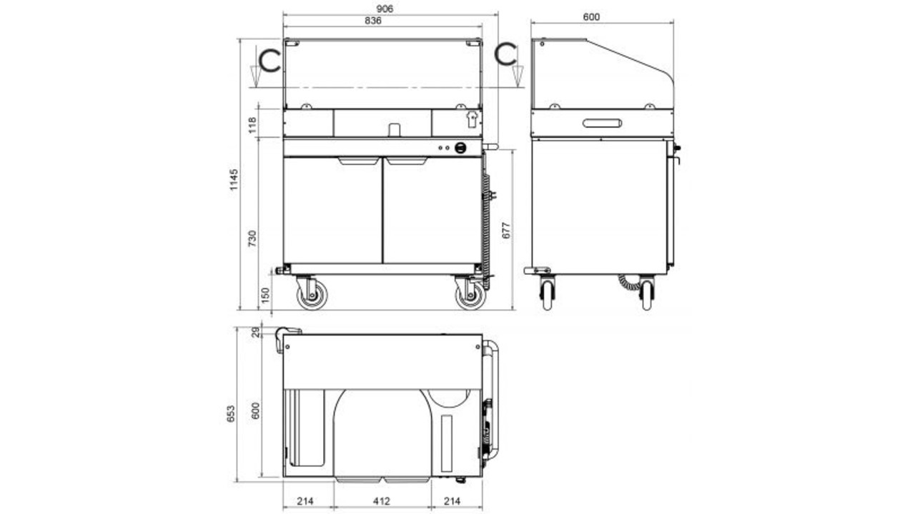 - Dimensions : L 906 x P 675 x H 1 150 mm