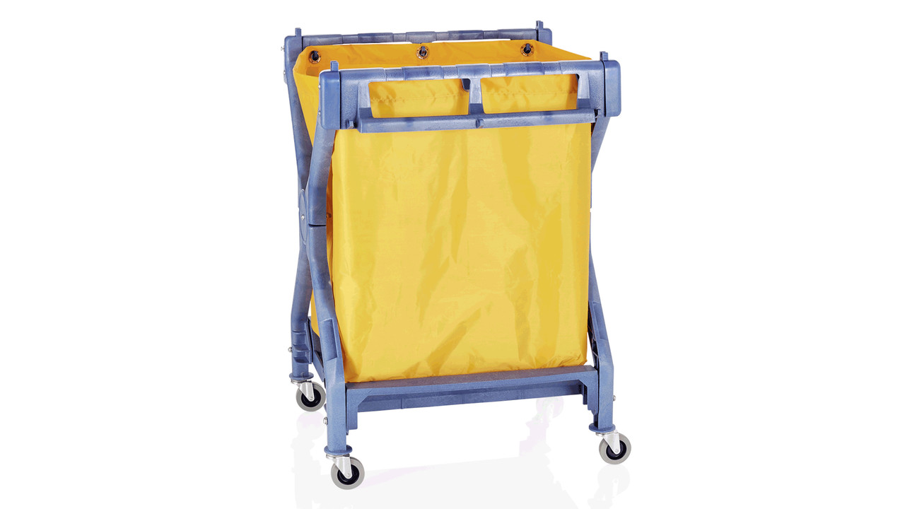 Chariot à linge en matière syntéthique avec sac nylon jaune modèle pliable
