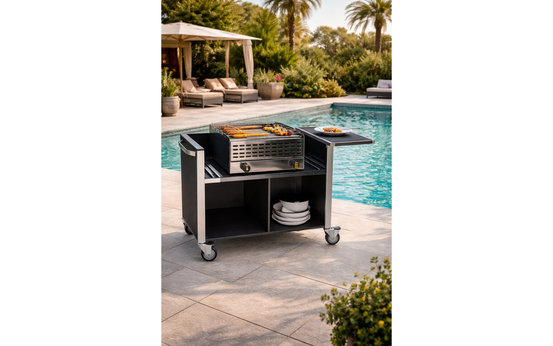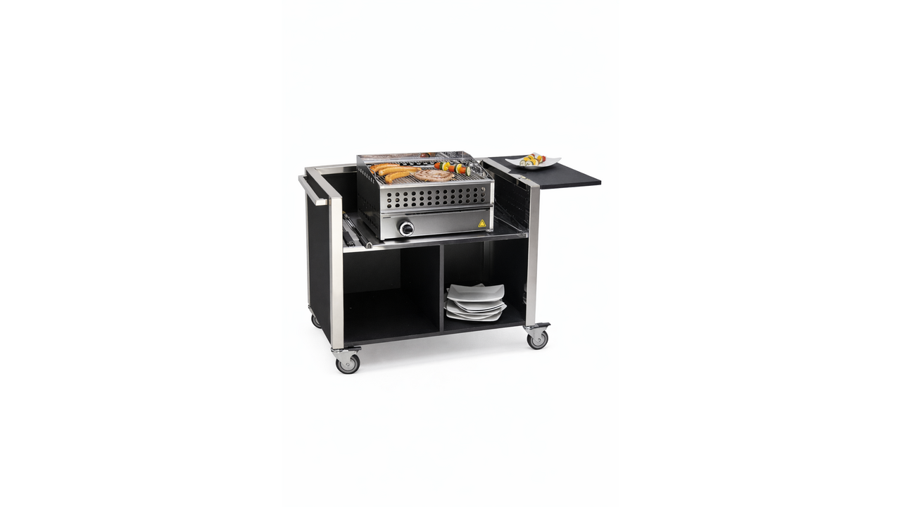 Ce chariot barbecue est une solution compacte et fonctionnelle pour la cuisson professionnelle et en extérieur. Sa structure robuste en acier inoxydable, associée à des surfaces en stratifié haute pression, garantit stabilité et durabilité.