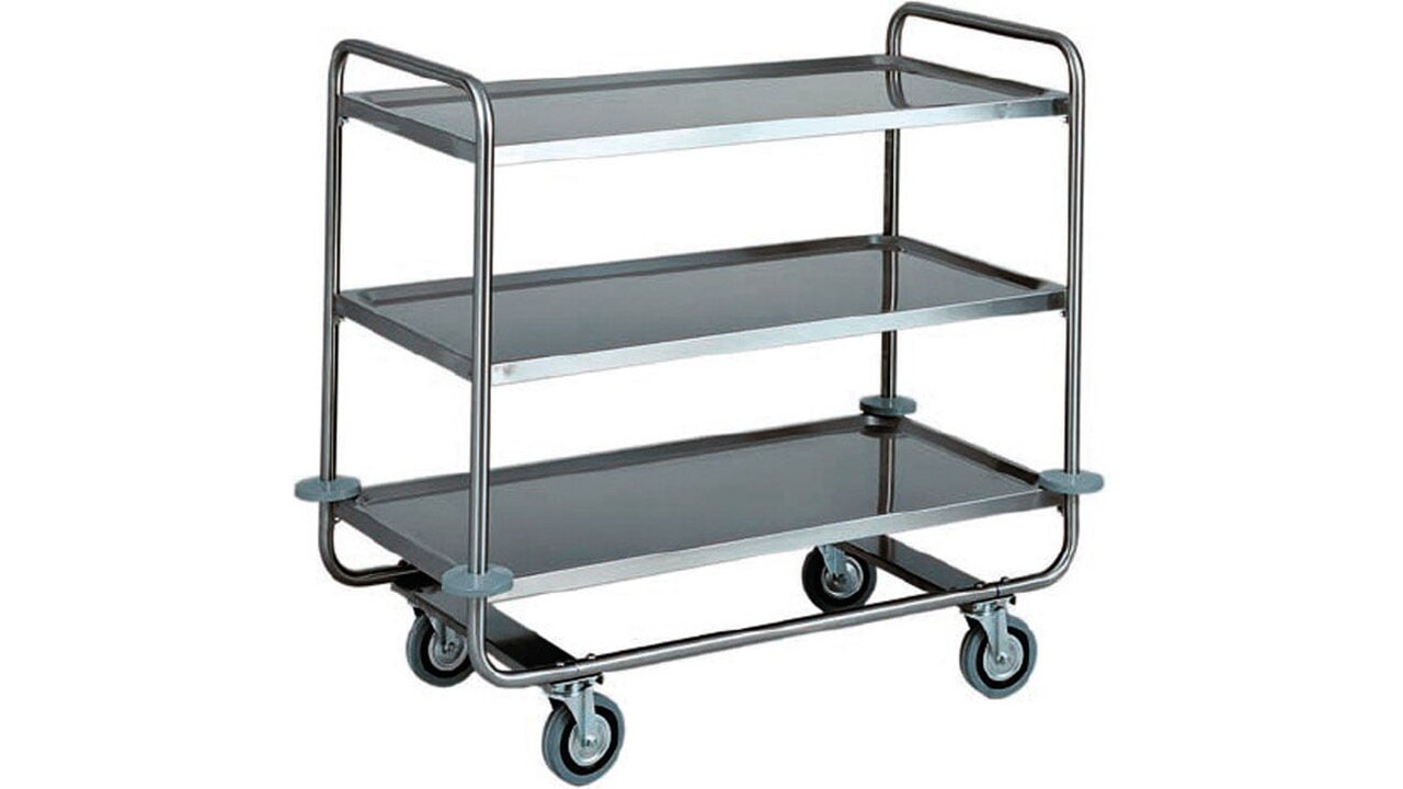 Chariots de service en acier inoxydable pour transport lourd. Structure tubulaire ø 25 mm en acier inoxydable AISI 304. Étagères en acier inoxydable AISI 304, en forme de plateau avec bords arrondis et forte épaisseur, insonorisées et finition satinée. Amortisseurs en caoutchouc. Roues multidirectionnelles ø 125 mm.