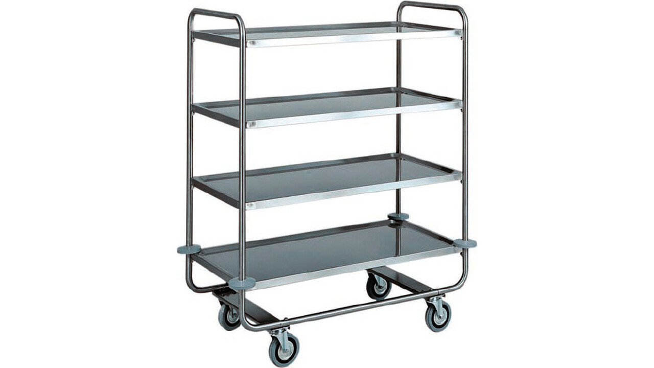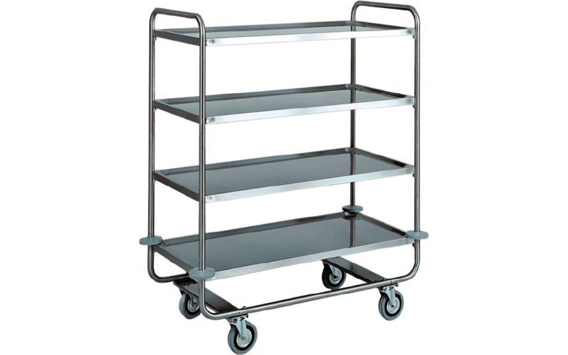 Chariots de service en acier inoxydable pour transport lourd. Structure tubulaire ø 25 mm en acier inoxydable AISI 304. Étagères en acier inoxydable AISI 304, en forme de plateau avec bords arrondis et forte épaisseur, insonorisées et finition satinée. Amortisseurs en caoutchouc. Roues multidirectionnelles ø 125 mm.