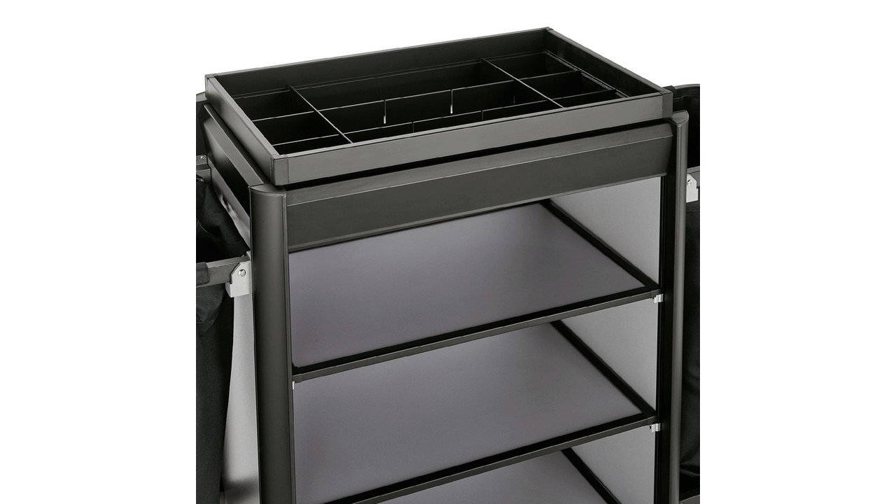 Chariot femme de chambre cadre en aluminium noir bois MDF aspect aluminium