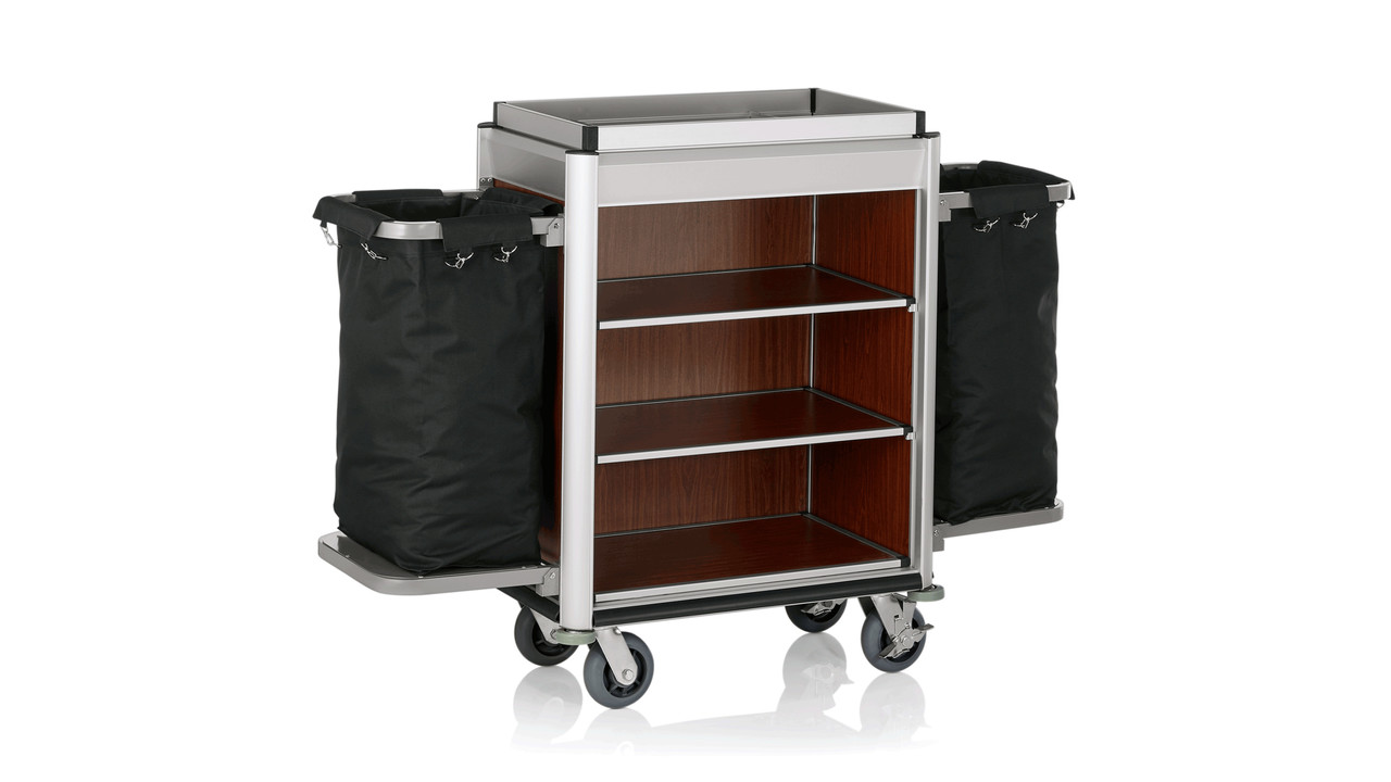 Chariot femme de chambre cadre en aluminium avec MDF couleur bois foncé