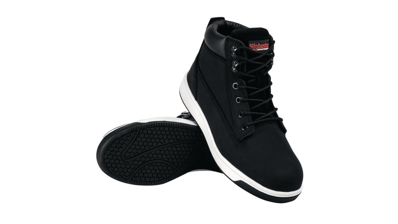 Chaussures de sécurité montantes en cuir de la marque professionnelle Slipbuster. Confortables et résistantes, elles sont certifiées norme SRC pour une efficacité anti-dérapante.