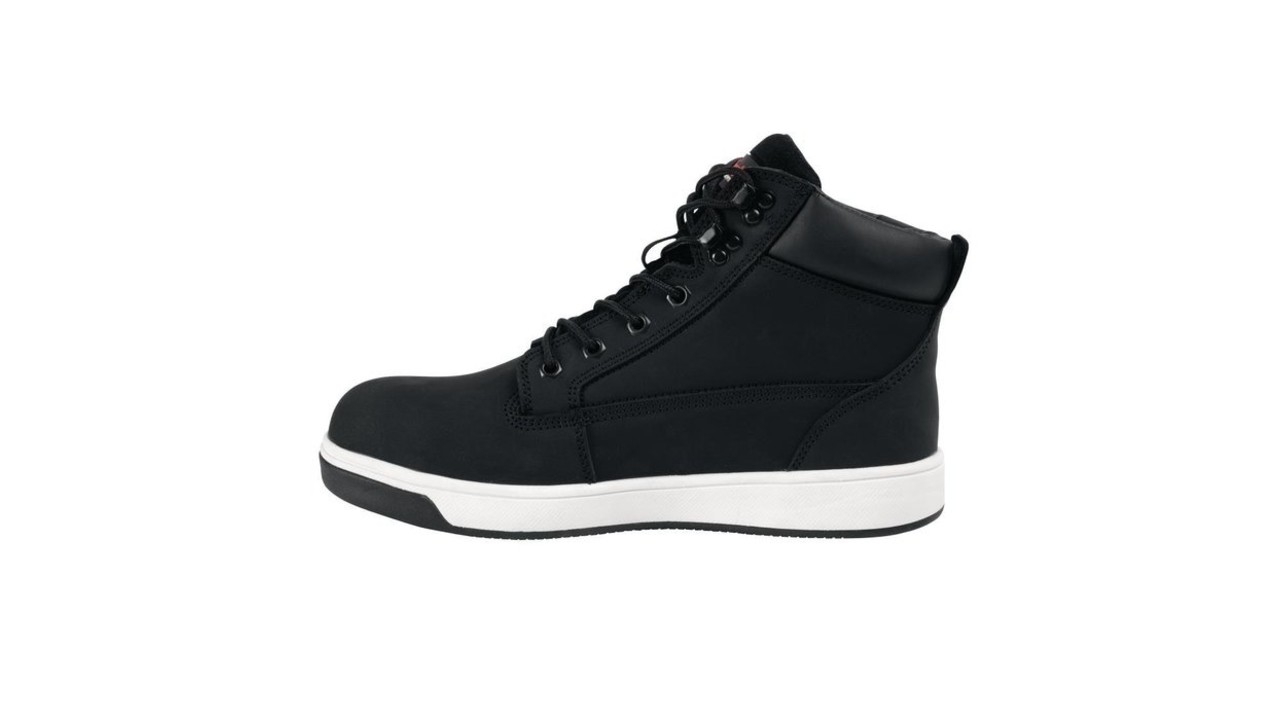 Chaussures de sécurité montantes en cuir de la marque professionnelle Slipbuster. Confortables et résistantes, elles sont certifiées norme SRC pour une efficacité anti-dérapante.