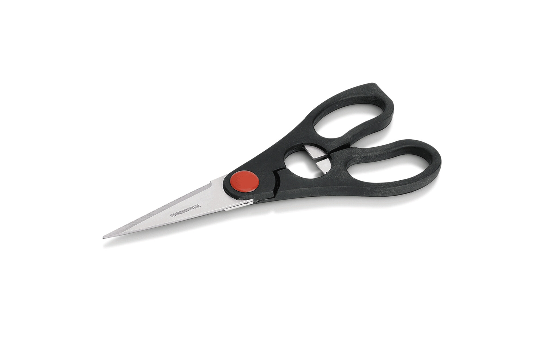 Ciseaux de cuisine avec décapsuleur, équipés d'une poignée en plastique ABS. Longueur totale: 20 cm