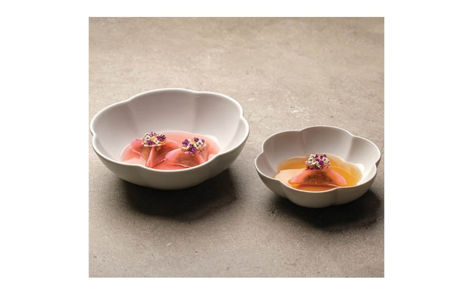 Cette nouvelle coupelle Fleur est fabriquée en porcelaine blanche extra-résistance.