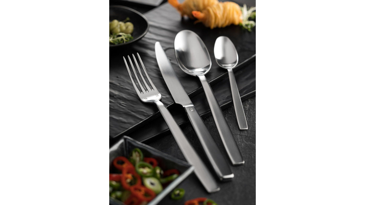 Dessiné par Nick Holland, Astoria est une réinterprétation du style Art-Déco à destination des plus belles tables. Son design épuré et son polissage 100% brossé lui confèrent charme et élégance discrète.