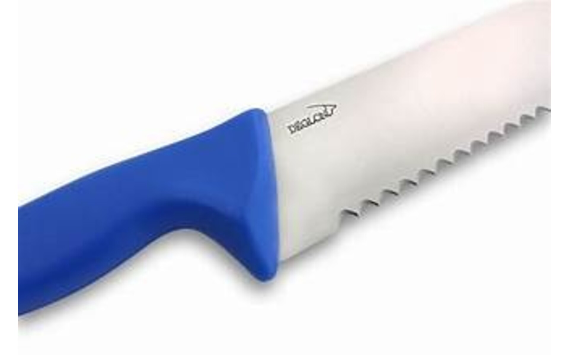 Couteau à poisson, lame de 33 cm micro-dentée et manche en polypropylène bleu. Grâce, notamment, à son manche surmoulé, ce couteau est conforme aux exigences HACCP en matière d'hygiène.