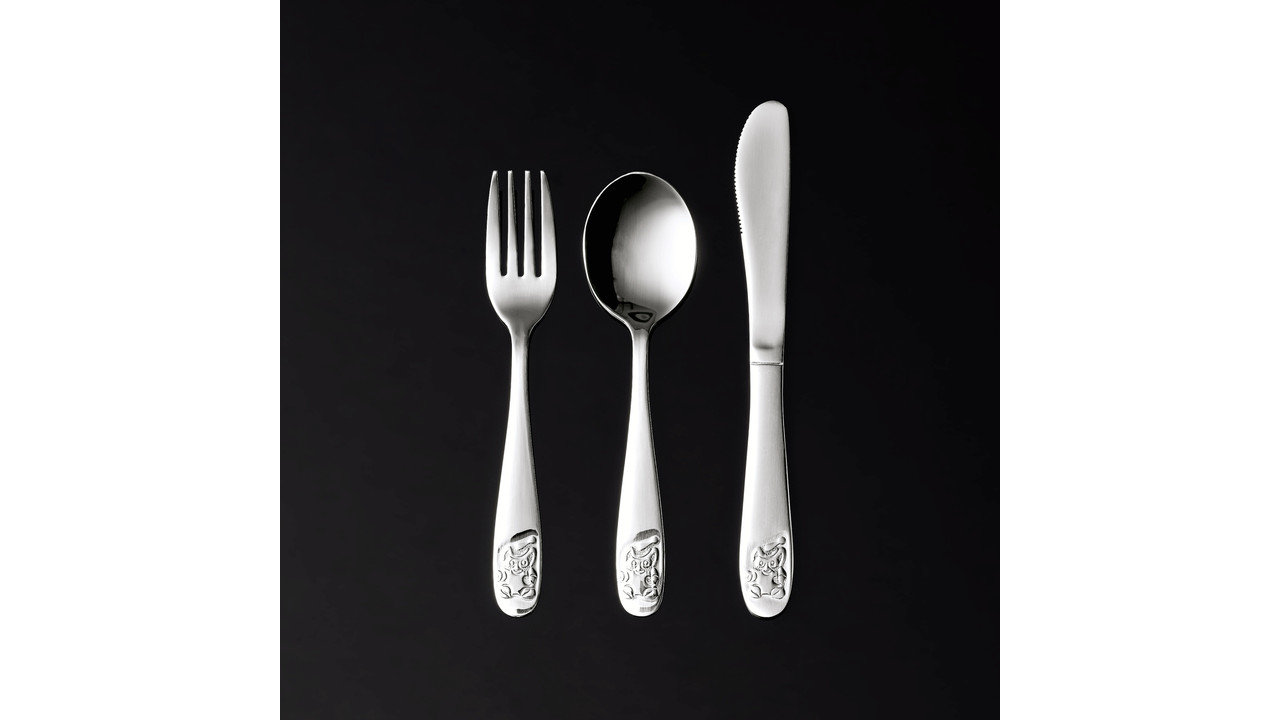 Couverts de haute qualité, acier inoxydable 18/10. Agréable avec motif ours estampé.